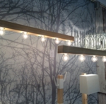 木のバーに白熱灯を連灯した、シンプルなペンダントです。